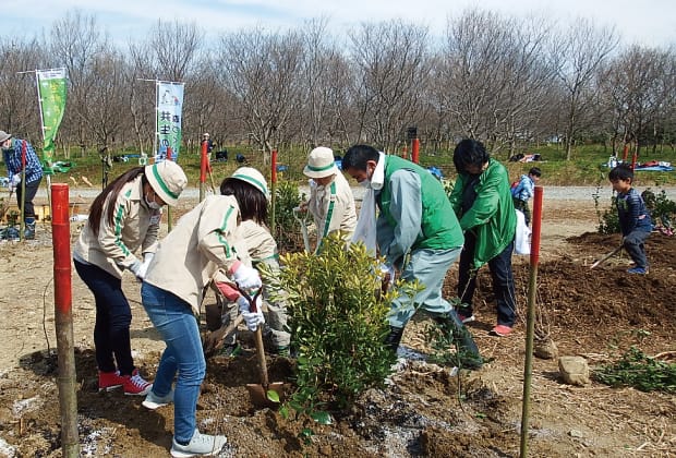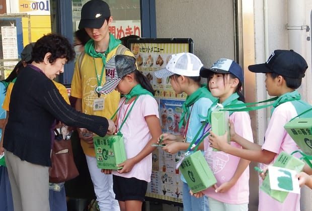 街頭で緑の募金の呼びかけや花の植え付け、清掃などのボランティア活動を行っています。